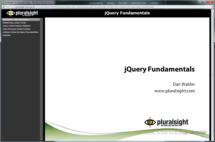 学JQuery最新免费教程[转]http://www.cnblogs.com/multiplesoftware/archive/2011/02/24/1963371.html我在ScottGuthrie的博客中看到这则消息,他发布的时候应该比我早几个钟头。Pluralsight(一个非常好的.NET培训公司)给大家提供一个免费观看他们教程 jQuery基础课...